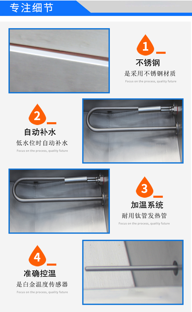 6、加溫系統(tǒng):發(fā)熱管采用鈦管。不易腐蝕,使用壽命更長